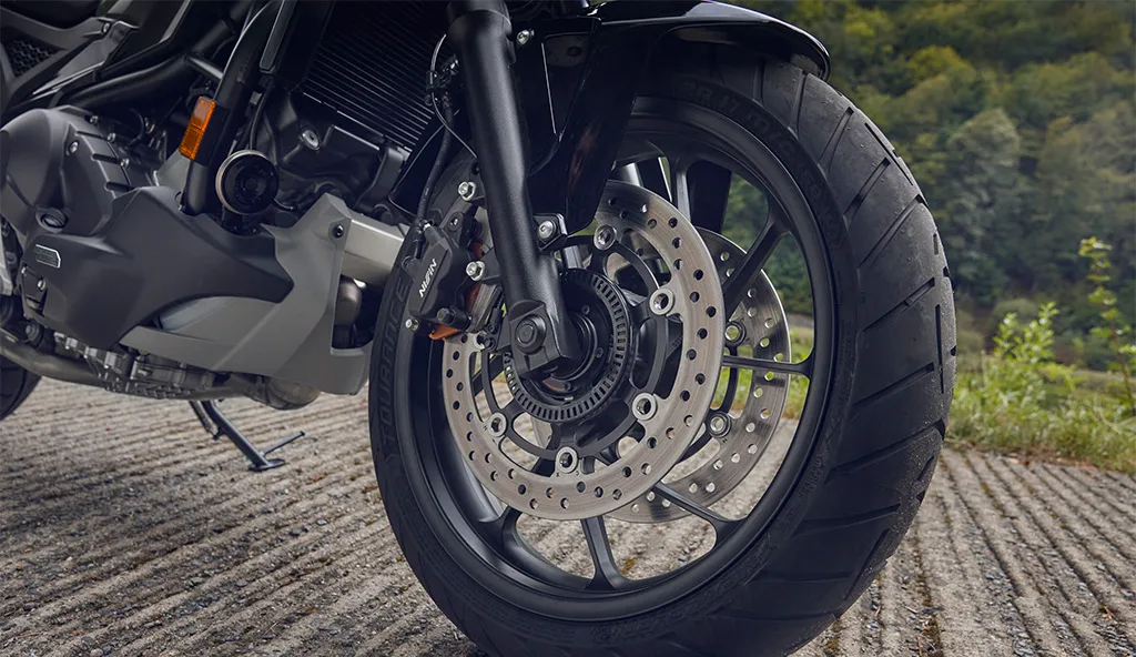 A nova NC 750X conta com um sistema de freios composto por discos duplos de 296mm na dianteira. Essa atualização proporciona maior eficiência na frenagem, melhor distribuição de força nas paradas e respostas mais precisas.
